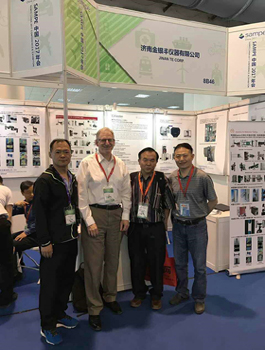 WDW-10S Superior Type Electromechanical Universal Testing Machines with 3D DIC Video Extensometer and Typical Axial & High Temperature Extensometers from Epsilon were shown successfully at SAMPE China 2017 Conference & Exhibition held in China International Exhibition Center, Beijing from May10thto12th2017. Thousands of experts and scholars, business representatives from the composite materials industry and analytical instruments industry attended this exhibition. Experts at home and abroad gave highly praise of Jinan TE’s products in quality, performance and perfect solutions. Dr. Mitch Jones from Epsilon USA, Prof. Niu from Peking University & Mr. Chen from AECC BIAM at TE booth Mr. Guo from SAMPE (Taiwan Chapter) at TE booth Dr. Mitch Jones from Epsilon USA was invited by SAMPE for Keynote Speech on the exhibition